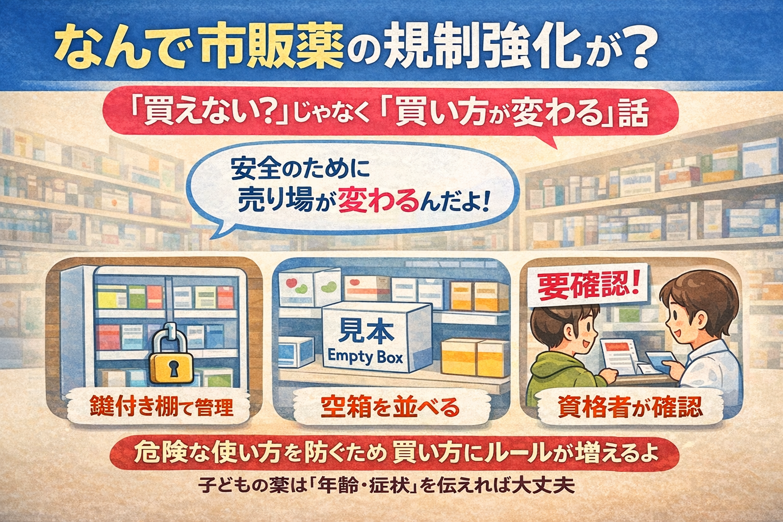 市販薬の販売規制が「なぜ強化されるのか」を、親向けにやさしくまとめました。